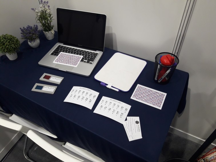 I designed this with my former team. I was responsible for planning the overall space of what sort of puzzles to use, and how it all flowed from start to finish. We had a public-ready playing experience by the time the Comic Fiesta 2018 came around.